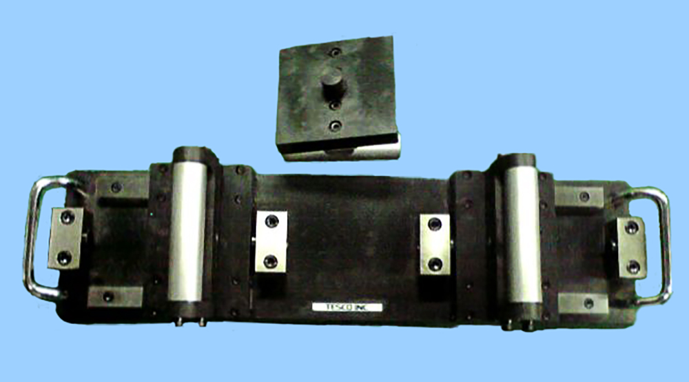 中央点載荷法によって硬化コンクリート供試体の曲げ強度試験をおこなうための載荷装置です。